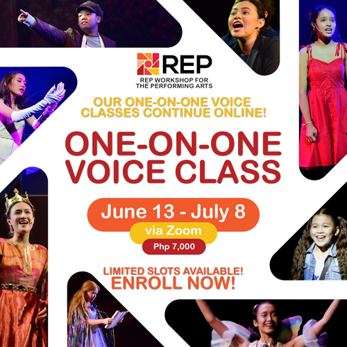 REPERTORY Philippines is offering one-on-one voice classes from June 13 to July 8. Registration is on a first-come-first-serve basis. The workshop is priced at P7,000, for 12 workshop sessions, conducted via Zoom. For registration and inquiries, visit the Rep Facebook page or Instagram page, or contact them through e-mail at sales@repphil.org or call 0966-905-4013.