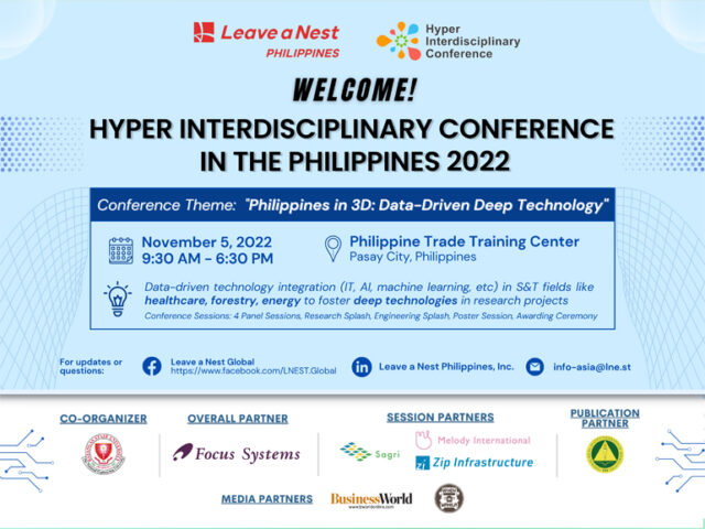 The Hyper Interdisciplinary Conference (HIC) in the Philippines is the first leg of the HIC ASEAN Series 2022-2023 organized by Leave a Nest Group in six ASEAN countries. The HIC serves as an avenue for researchers, individuals from the private sector, government agencies, academic institutions and startup companies to showcase innovative research ideas and formulate groundbreaking opportunities with all attending stakeholders.