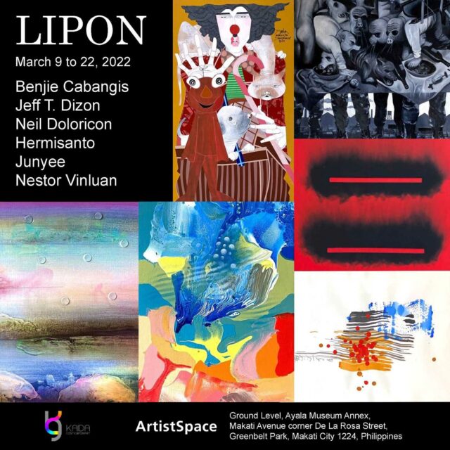 LIPON, a group exhibit presented by Kaida Contemporary, features six Filipino visual artists: Benjie Cabangis, Jeff T. Dizon, Neil Doloricon, Hermisanto, Nestor Vinluan, and Junyee. It will be on view from March 9 to 22 at the ArtistSpace. An exhibition years in the making, Lipon was scheduled before the pandemic. Now, it is only fitting to look to works of art that can bring the flush of health back to our greyed-out collective perception. Lipon in the local language defines how individuals come together to converse and pursue discourse in contribution to a larger dialogue in society; a meticulously selected collection of paintings signifies this gathering, presented in this timely exhibition that traces not only creative manifestations from the past, but also highlights the divergent paths the artists have taken on their journey to self-expression and social commentary. ArtistSpace is located at the Ground Level, Ayala Museum Annex, Makati Ave. corner De La Rosa St., Greenbelt Park, Makati City. The gallery is open daily from 11 a.m. to 8 p.m. Admission is free.