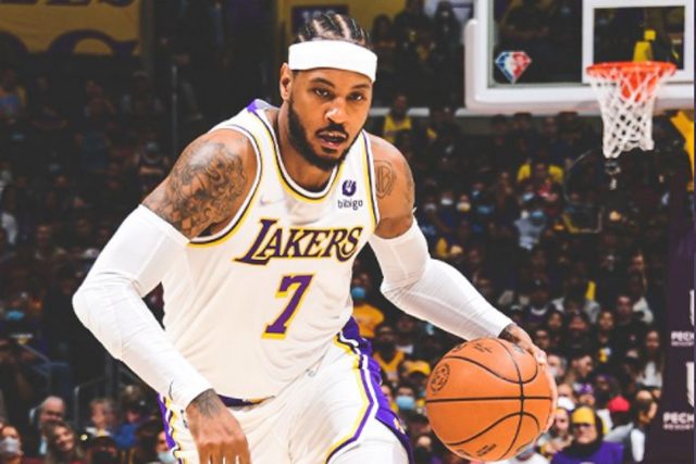 Anthony made 3-of-4 three-point attempts in the first quarter to help the Lakers take a 27-15 lead.