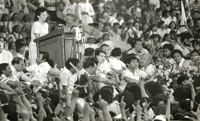 As expected, Comelec declared Marcos the winner by about 1.5 million votes while election monitor Namfrel (National Citizens’ Movement for Free Elections) announced from its main tallying center, La Salle Green Hills, that Corazon Aquino won by a little over half a million votes. The Comelec announcement precipitated the proclamation by the KBL-dominated parliament of Marcos as president. On Feb. 20, Corazon Aquino led more than a million people in a prayer rally at Luneta Park and promptly declared a boycott of Marcos crony-owned businesses, just short of calling for civil disobedience a la Mahatma Gandhi.