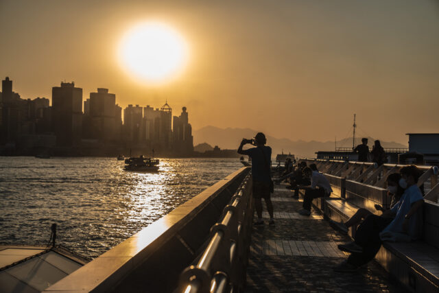 Visitors along the promenade in the Tsim Sha Tsui district in Hong Kong, China. Photographer: LAM YIK/BLOOMBERG