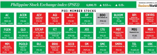 Shares in PNB ended at P20.60 apiece on Wednesday, up by 60 centavos or by 3% from the previous day. — B.M. Laforga