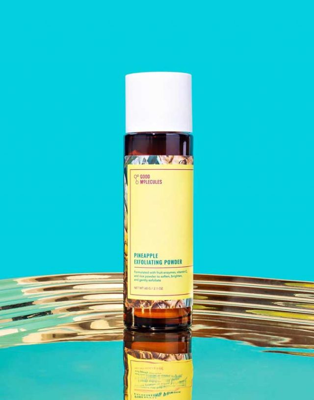 The Pineapple Exfoliating Powder is a water-activated exfoliant that is said to gently buff away dead skin cells and dullness thanks to its pineapple, papaya, and kiwi extracts.
