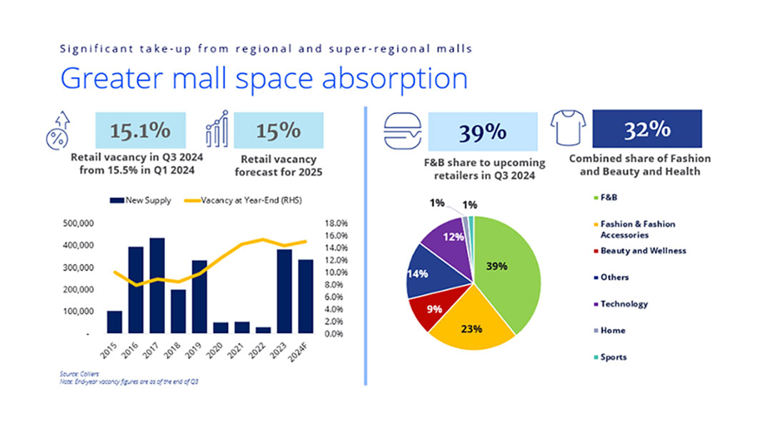 Colliers believes that mall operators and retailers need to cash in on the festive season and seize greater spending across the country. With continued mall space take-up from local and foreign brands, mall operators should take the lead in ensuring that retail spaces are more immersive and experiential while proactively taking into account the tenants’ size and fit out requirements. Meanwhile, mall operators should also look at the viability of featuring coworking facilities and work with their tenants to amplify their brick and click (omnichannel) strategies.