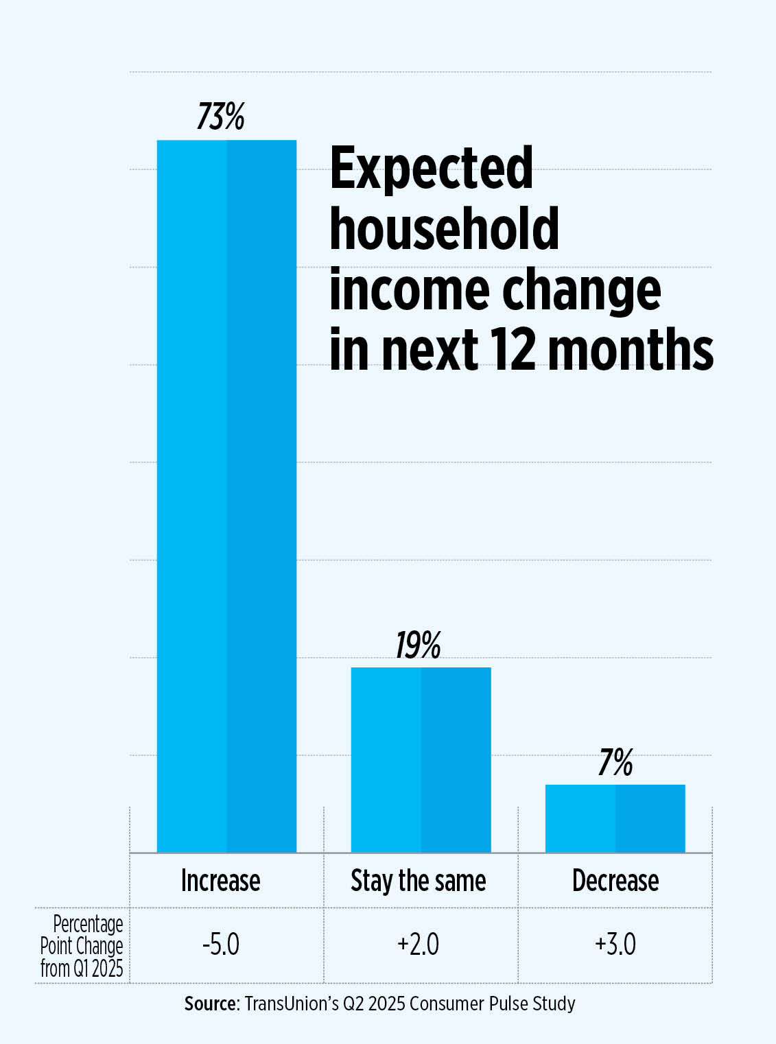 According to the TransUnion report, consumer financial health stayed mostly stable as 41% of consumers suggested a rise in their income for the past three months, while 73% of Filipino consumers expect a rise in come next year, an optimistic outlook on their financial futures.