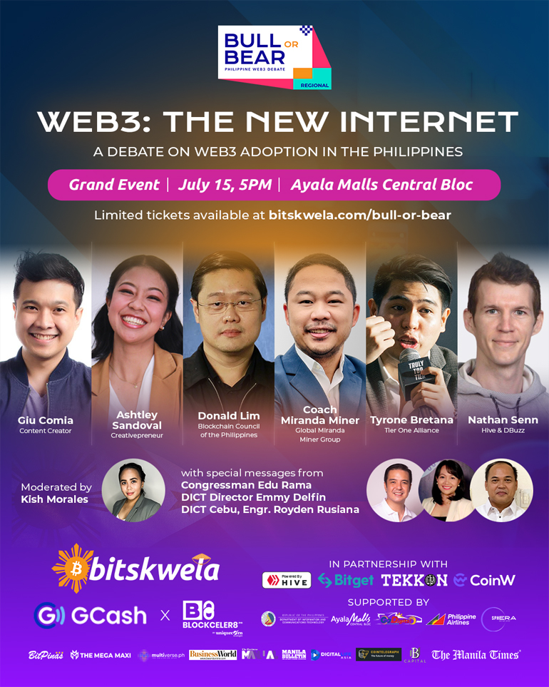 Philippine-based education platform Bitskwela is proud to announce that it will be hosting the grand debate of the “Bull or Bear: Philippine Web3 Debate 2023” on July 15, 2023, at 5 p.m., at the Ayala Malls Central Bloc, Cebu IT Park, Cebu City.