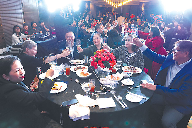 BusinessWorld Editor-in-Chief Cathy Rose A. Garcia, Awards Night Host Dr. Danie Laurel, and BusinessWorld Chief Finance Officer Carlos R. Dizon