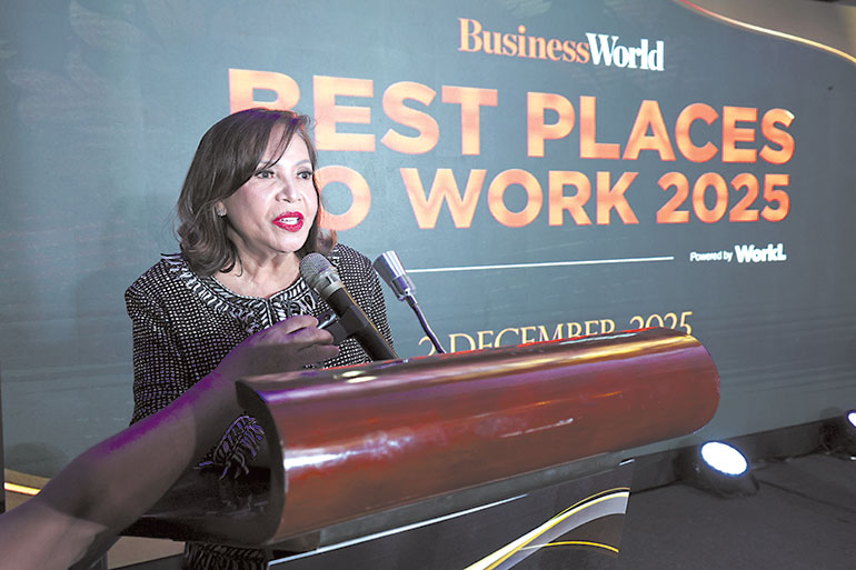 BusinessWorld Editor-in-Chief Cathy Rose A. Garcia opened the program by addressing the global drop in worker engagement and the mixed reaction to artificial intelligence (AI). She said many employees worldwide had expressed uncertainty about the future of their work but noted that the companies honored in this year’s awards proved that growth and people could move forward together.