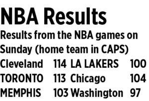The Lakers also shot eigth of 27 from 3-point range. LeBron James, who was a combined 0-for-12 from beyond the arc in Los Angeles’ previous two games, finally connected on one Sunday but was just one-for-four from deep.