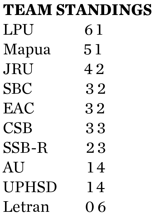 In the other game, San Sebastian College-Recoletos (2-3) and University of Perpetual Help (1-4) face off at 2 p.m. — Joey Villar