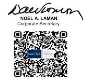 Access to Notice of Meeting, Agenda Items and Explanation of Agenda Items, Proxy Form, Sample Secretary Certificate, Definitive Information Statement, Management Report, Financial Statements, SEC Form 17A, and Minutes of Stockholders’ Meeting dated August 7, 2020 can be downloaded by scanning the QR code provided herewith. Likewise, you may also download it from the Company’s website by clicking this link https://www.nat-re.com/investorrelations/annual-stockholders-meeting/#files.