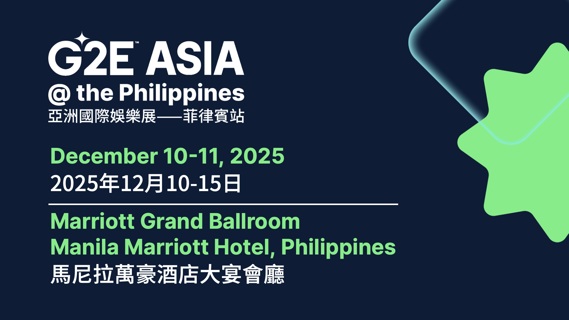 G2E Asia @ the Philippines, a special edition of G2E Asia, makes its highly anticipated return to Manila Marriott Hotel this Dec. 10 and 11. Tailored for the Philippine gaming industry, the 2-day event will feature over 100 brands in the exhibition, many of which have no local presence.