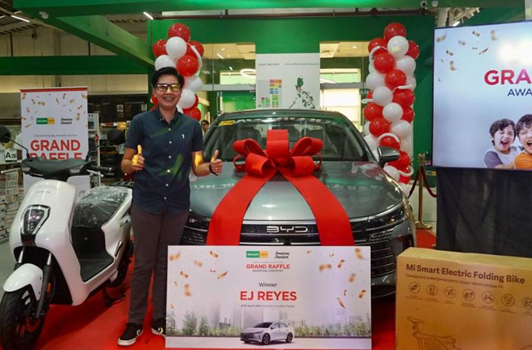 Grand Prize Winner EJ Reyes takes home a brand-new BYD Hybrid Electric Sedan, the ultimate highlight of the American Standard 150th Anniversary Raffle at Wilcon Depot, marking a thrilling culmination of the milestone celebration.