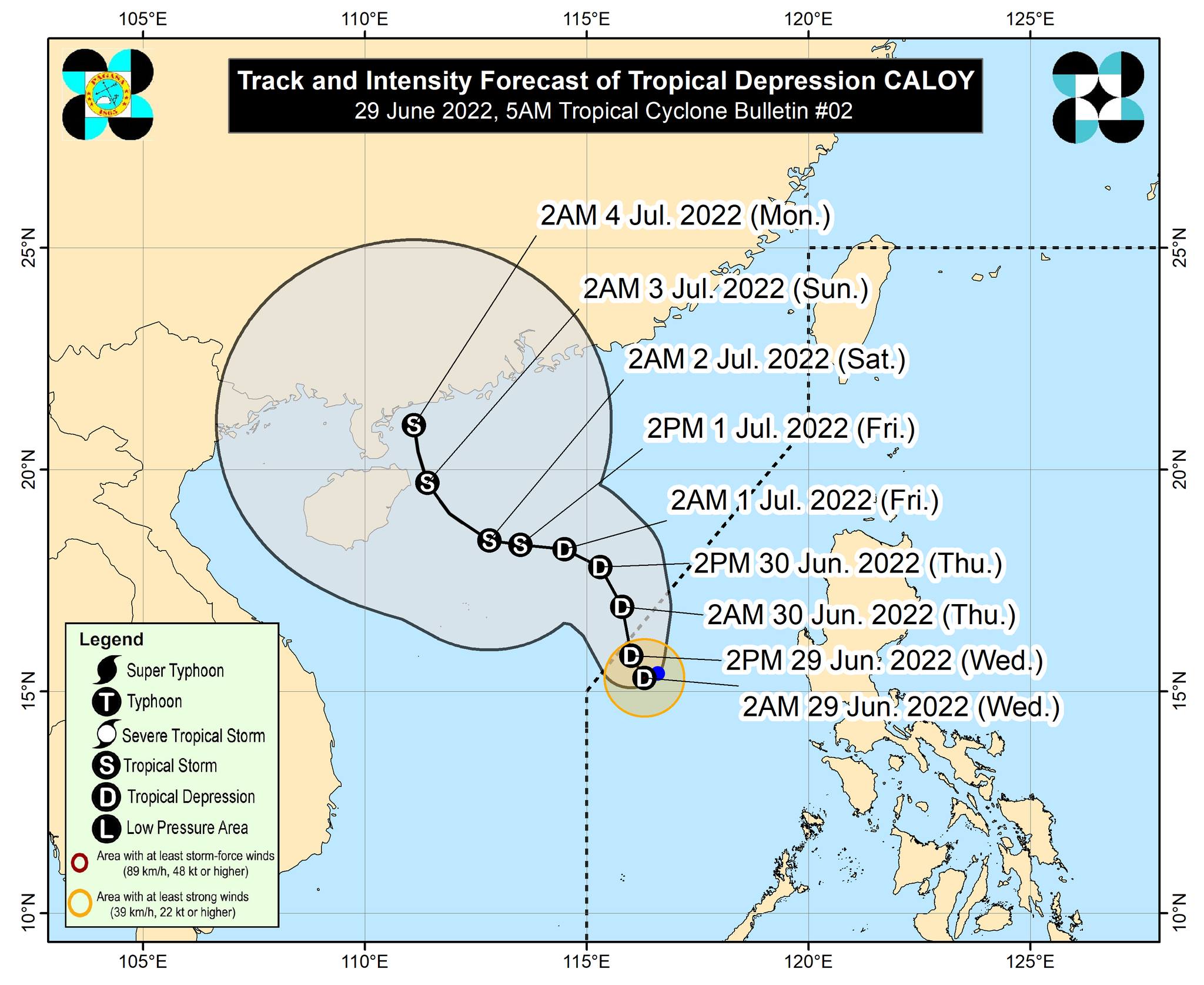 As of Wednesday 10 a.m., the center of tropical depression Caloy was located 375 kilometers (km) west of Iba, Zambales.
