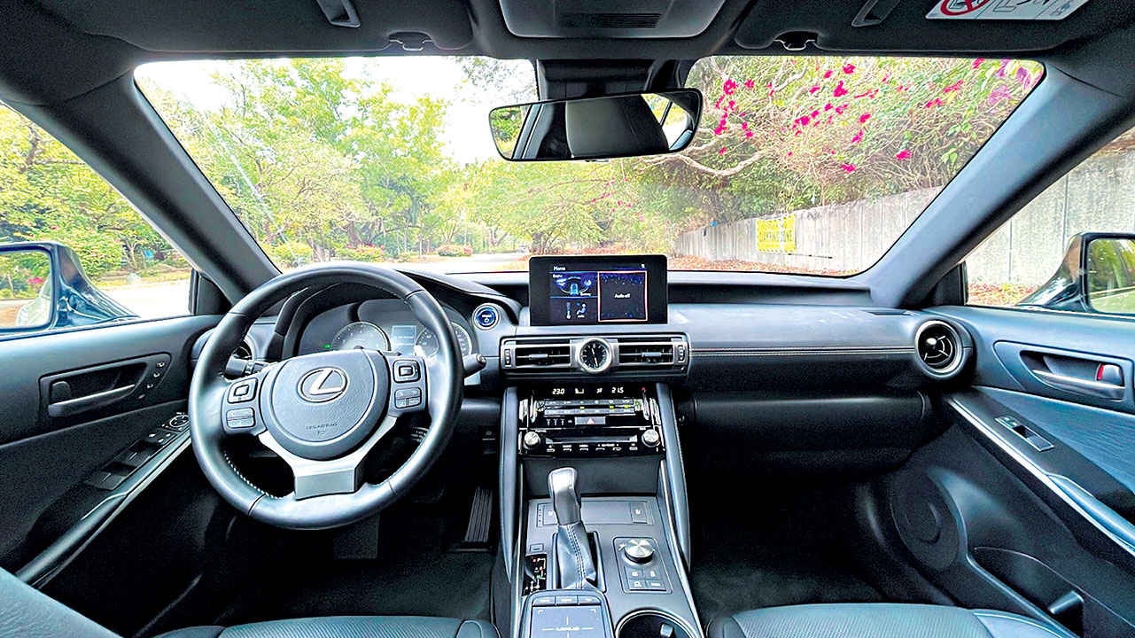 There are three models in the Lexus IS series and the one I’m test-driving, the Lexus IS 300h Premier, is in the middle. Priced at P3.3 million, you might say it’s the second most expensive sports sedan in the series or the second least expensive — depending on whether you’re a millionaire or a multi-millionaire. (The IS 300h is P2.9 million; the IS 350 F Sport is P3.8 million.)