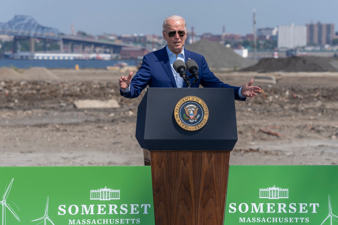 Mr. Biden spoke from a former coal-fired plant that is playing a role in supporting the state’s offshore wind industry as a manufacturing hub for undersea cables.