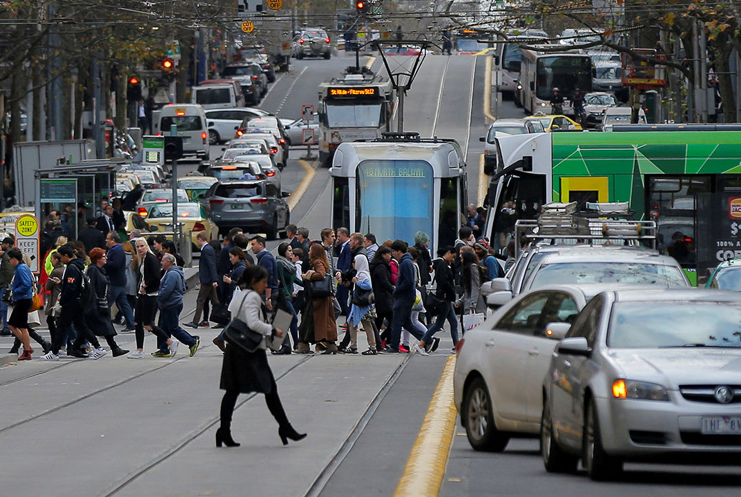 Commuters and trams cross Bourke Street in Melbourne, Australia, June 13, 2017. — REUTERS